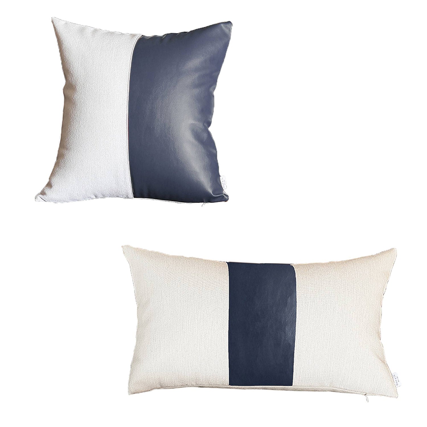 Bohemian Mixed Set of 2 Vegan Faux Leather Navy Blue Solid Throw Pillow Cover for Couch, Bedding