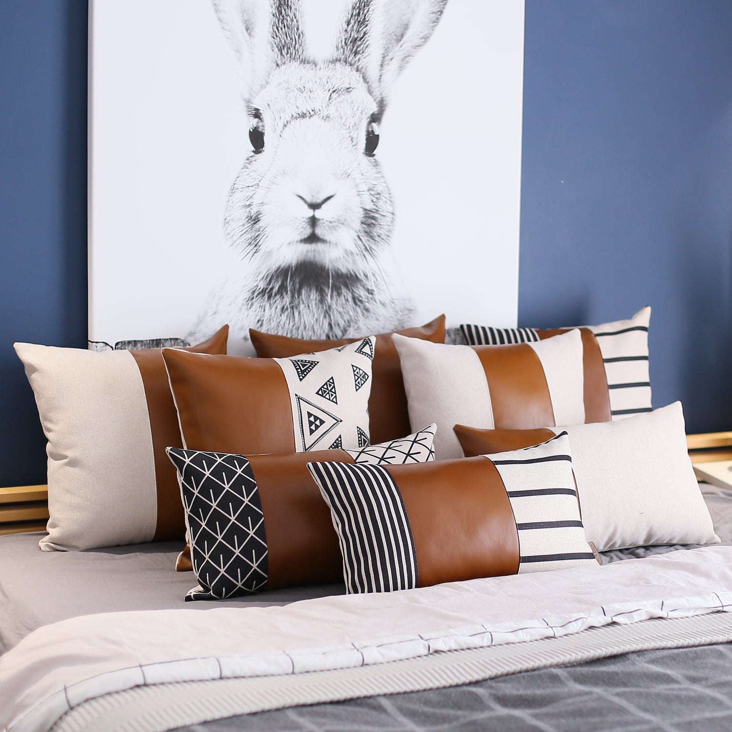 Elevate your home décor with our Handmade Decorative Boho Mixed Design Vegan Faux Leather Throw Pillow Set.