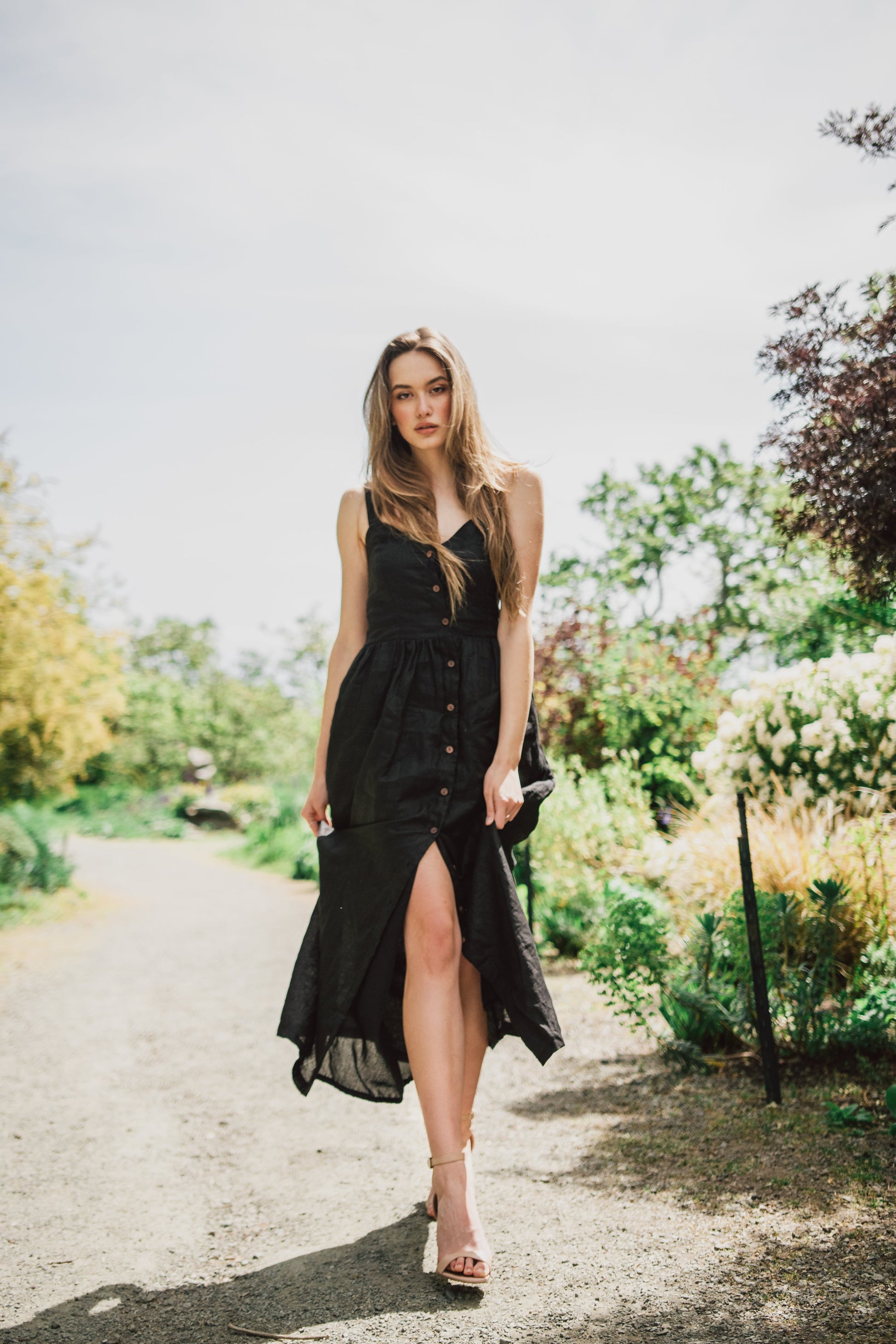 Our Daria Dress in linen is soft and feminine, It features a fitted top and flowing bottom, comes fully lined and has pockets. This dress is simply elegant in its design and embodies style without compromising comfort.