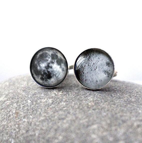 This is for a pair of cufflinks in antique bronze or silver tone with the near and far sides of the Moon. Very fun for any stargazer!